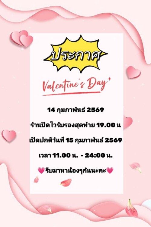 ผู้เขียน หัวข้อ: 14-2-69 วันนี้ร้านปิด 19.00 น.วัน วาเลนไทน์ คุ้มสุดๆ ลด ลด 100 บาท ตลอดทั้งวัน  (อ่าน 71 ครั้ง)